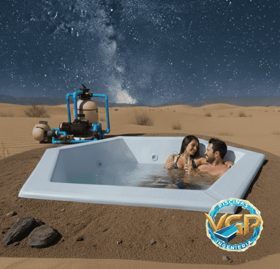 Instalación de jacuzzi 1.7 x 1.7 mts hexagonal a ras de piso de tierra.
